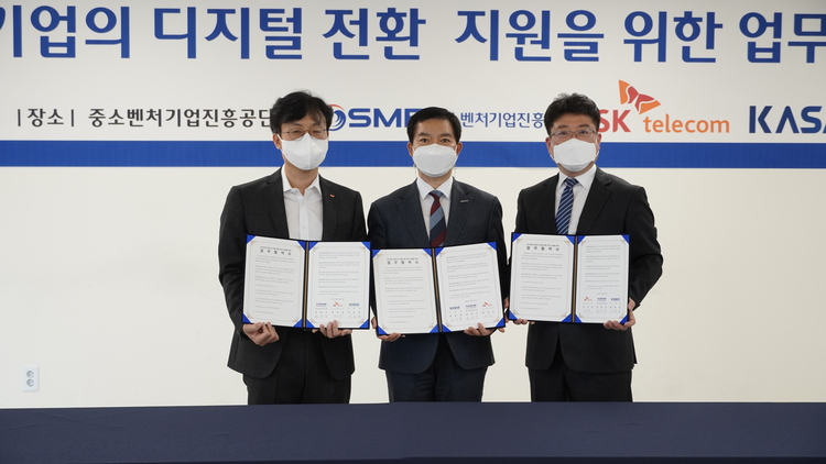 【 청년일보 】 SK텔레콤과 중소벤처기업진흥공단, 한국스마트팩토리 데이터협회(KASAD)가 '중소기업 디지털 전환 촉진을 위한 업무협약'을 19일 체결했다.