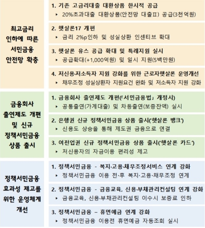 ◆ 저신용자 대상 대출·신용카드 출시 예고...정부, 최고금리 인하 후속조치 발표