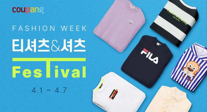 패션위크는 쿠팡이 매달 첫 주 테마를 선정해 일주일간 패션 트렌드 및 할인 상품을 제안하는 패션 주간 할인 이벤트로, 이달의 테마는 '티셔츠·셔츠 페스티벌'이다. 이번 행사에서는 티셔츠, 셔츠는 물론 티셔츠나 셔츠 함께 코디하기 좋은 상품을 제안한다.
