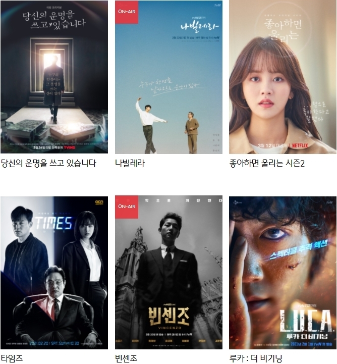 이는 스튜디오드래곤이 제작한 빈센조, 철인왕후 등이 시청률 10%를 상회하며 흥행에 성공했고, 넷플릭스 오리지널인 좋아하면 울리는2, 티빙 오리지널인 당신의 운명을 쓰고 있습니다 등이 반영.