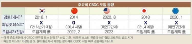 이와 관련해 이주열 한국은행 총재는 2월 국회 업무보고에서 "CBDC 설계와 기술면에서 검토가 거의 마무리 됐다"고 설명한 바 있다.