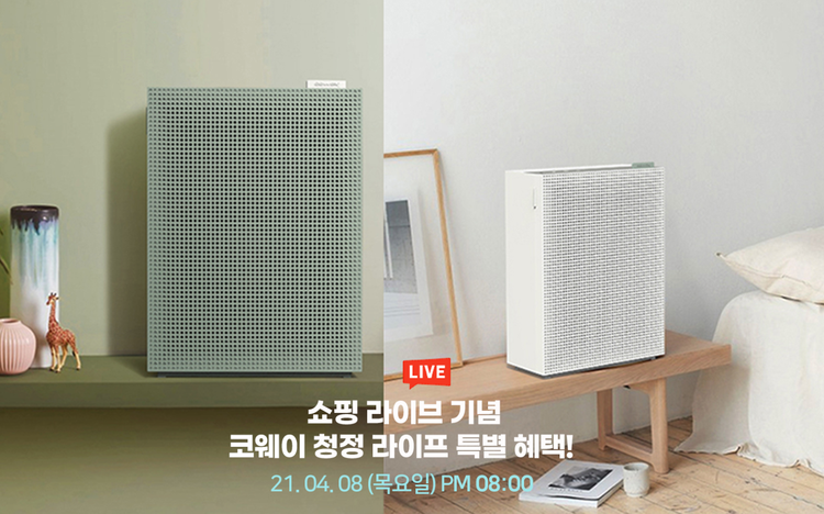 코웨이 청정 라이프 특별전은 이날 저녁 8시 부터 60분 동안, 봄 시즌을 맞아 1인 및 소형 가구에 적합한 정수기, 공기청정기 제품을 소개한다.
