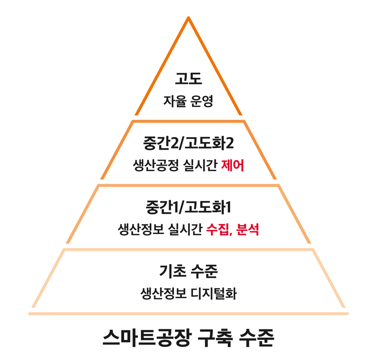중소벤처기업부가 제시한 스마트 팩토리 고도화 1단계는 실시간 수집/분석 기능을 수행해야 하며, 고도화 2단계에서는 실시간 제어 기능을 수행해야 한다.