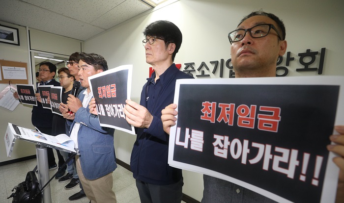 중소기업중앙회는 "영세기업은 급격히 인상된 올해 최저임금으로 사업 존폐 위기에 놓여있다는 것을 전 국민이 공감했다"며 "심각한 분노와 허탈감을 느낀다"고 비난했다.