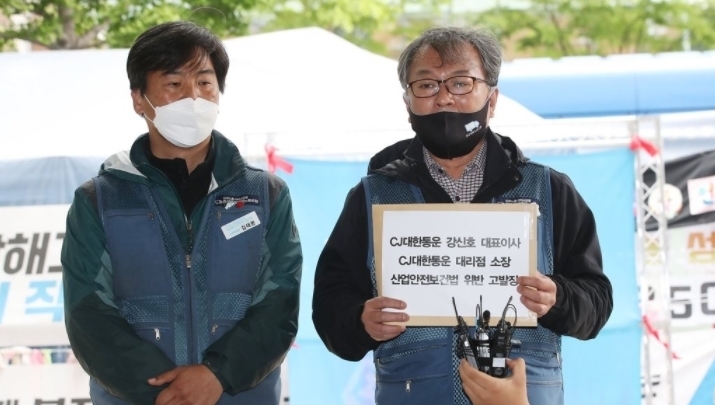 민주노총 서비스연맹 전국택배노동조합(택배노조)은 29일 서울지방고용노동청에 CJ대한통운 강신호 대표이사와 해당 아파트를 담당하는 대리점장을 산업안전보건법(산안법) 위반 혐의로 고발.