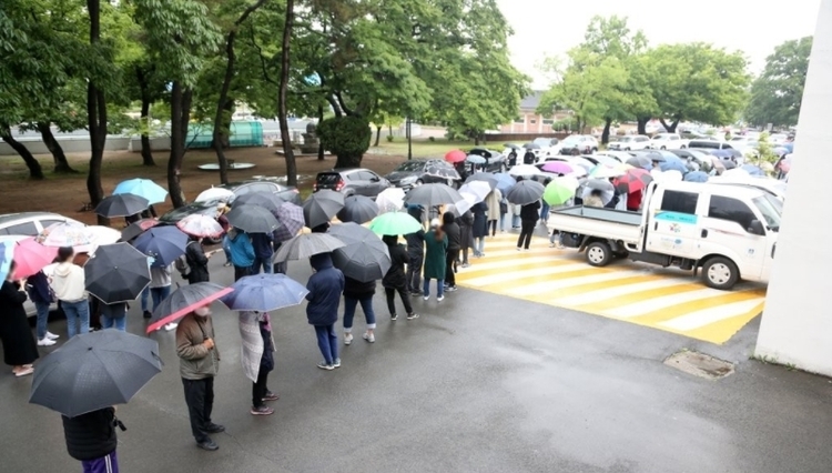 17일부터 시민운동장에 임시선별진료소를 추가로 마련해 검사에 나섰지만, 이른 아침부터 시민이 나와 줄을 서면서 시민운동장 바깥을 한 바퀴 반 이상 돌 정도로 수천 명의 시민이 줄을 섰다고.