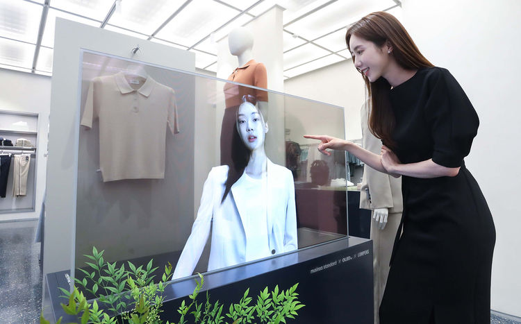 매장 내 설치된 55인치 투명 OLED 쇼윈도는 각종 제품 정보를 실시간으로 보여줄 뿐만 아니라, 쇼윈도 속 실제 제품에 가상 이미지를 겹치는 방식으로 여러 콘텐츠를 표현해 방문객들에게 볼거리를 제공한다.