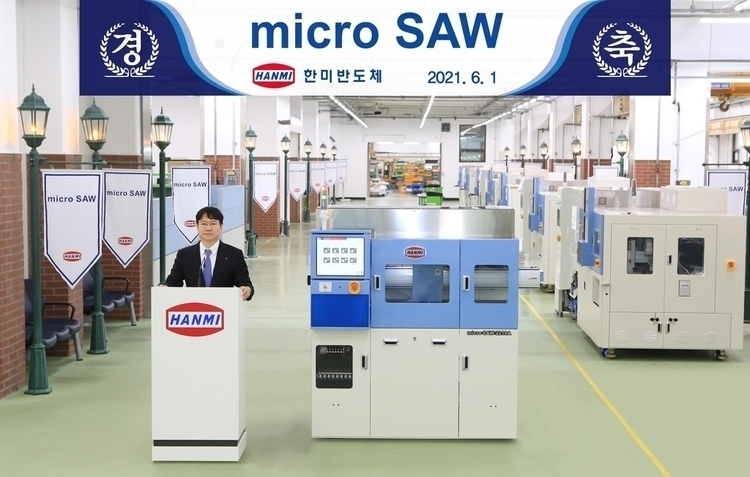 윤혁진 SK증권 연구원은 한미반도체는 일본에 전량 수입 의존하던 반도체 패키지용 '듀얼 척 쏘(Dual chuck Saw)' 장비를 국내 최초로 개발했다고 설명.