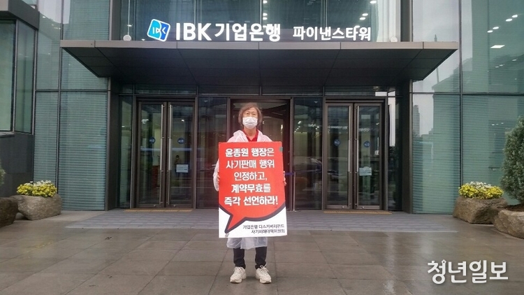 이의환 대책위 집행위원장은 이날 집회에서 "기업은행은 디스커버리 펀드 피해 보상에 대해 피해자들이 납득하지 못하는 범위에서 진행하고 있다"고 주장했다.