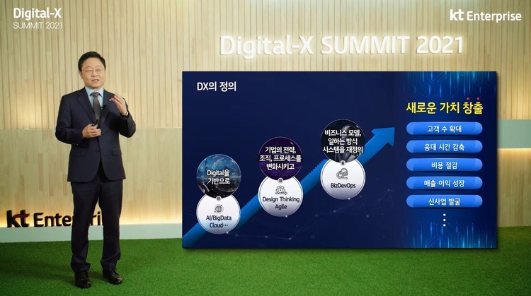 KT는 16일 온라인으로 '디지털-X 서머 2021' 콘퍼런스를 개최했다. 이번 행사는 KT의 B2B 고객 DX 사례를 소개하고 전략을 논의하는 자리다.