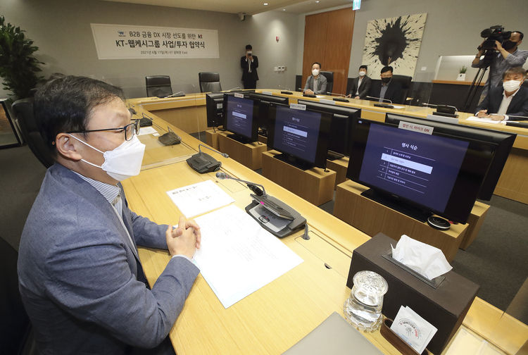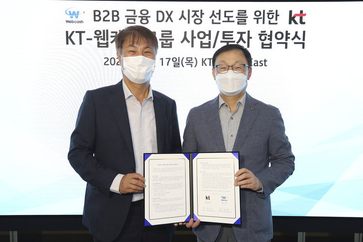 KT는 17일 웹케시 그룹과 전략적 지분투자 및 B2B 금융 사업 협력 계약을 체결했다.