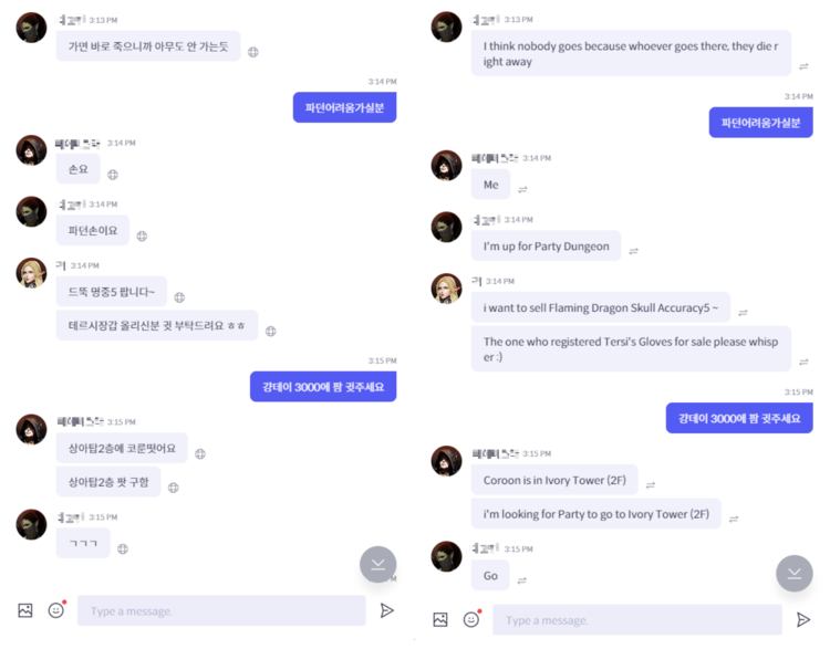 엔씨의 AI 번역 엔진은 일상적인 대화 외에도 게임 용어 및 구어 번역 부분에 특화된 번역 지원. 각 게임별 전문 용어, 채팅 은어, 줄임말까지 인지해 해당 국가의 언어로 자연스럽게 번역.