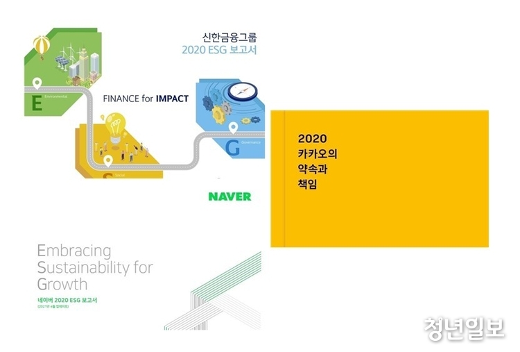 금융, IT 등 분야에서 22일 업계 분석에 따르면 신한금융그룹, 카카오, 네이버 등은 ESG 중심 경영을 바탕으로 사업실적을 평가하고 기업의 미래지향점을 제시하는 ESG 가치 기준의 구체화 및 실현 계획을 담은 보고서들을 출간했다.