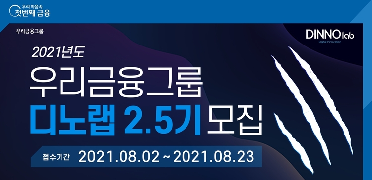 【 청년일보 】 우리금융그룹은 스타트업(Start-up) 협력 프로그램인 '디노랩(Digital Innovation Lab)'에 참여할 2.5기 기업을 모집한다고 2일 밝혔다.