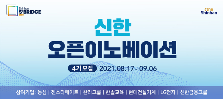 【 청년일보 】 신한금융그룹은 17일 그룹내 운영하는 스타트업 육성 플랫폼 '신한 스퀘어브릿지(S² Bridge) 서울'을 통해 내달 6일까지 '신한 오픈이노베이션(Shinhan Open Innovation)' 4기 프로그램에 참여할 스타트업을 모집한다고 밝혔다.