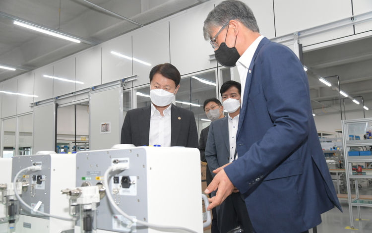 김강립 식품의약품안전처 처장은 20일 코로나19 중증 환자 치료에 쓰이는 인공호흡기 제조업체 멕아이씨에스를 방문해 품질관리와 공급에 힘써달라고 당부.