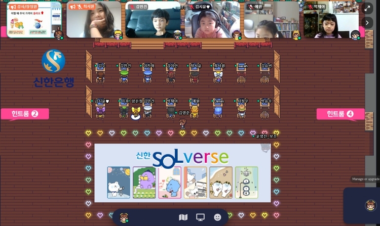 신한 Solverse 메타금융스토리 참여한 초등학생들은 메타버스 플랫폼에서 아바타를 통해 서로 소통하고 저축의 필요성, 투자 이야기, 투자 게임, 금융 OX퀴즈 등의 프로그램을 함께 하면서 재미있게 메타버스를 체험하고 금융지식을 습득하는 시간을 보냈다.