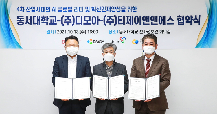 디모아는 4차 산업혁명 시대를 맞이해 AI 전문파트너 동서대학교, 티제이앤앤에스와 손잡고 AI 역량을 갖춘 인재 육성을 위해 3사 간 업무협약을 체결했다고 14일 밝혔다.