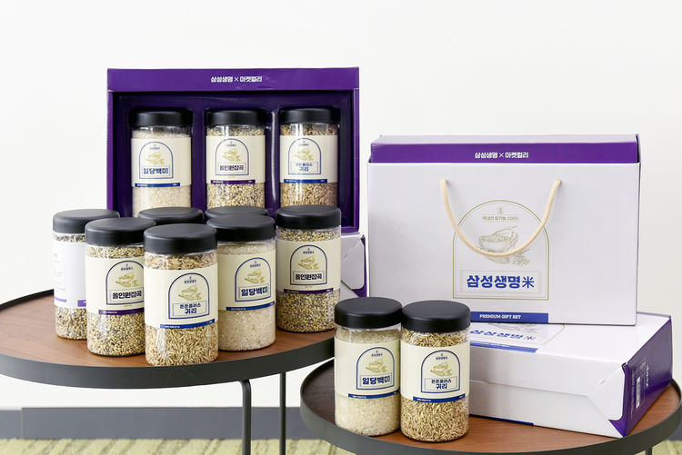 '삼성생명미(米)'는 올해 수확한 국내산 프리미엄 햅쌀 3종으로 구성돼 있다. 유기농 백미, 귀리, 잡곡(보리5곡) 각 450~500g씩 1.45kg이며, 재사용이 가능한 용기에 개별 포장돼 사용이 간편할 뿐 아니라 선물용으로도 활용할 수 있다.