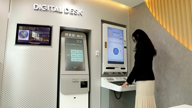 스마트 키오스크는 통장, 카드, OTP, 지로용지 등 실물 기반의 거래가 가능한 고기능 ATM 기기로 보안매체 재발급, 체크카드 즉시발급, 공과금 납부, 현금 입·출금, 통장 정리 등 80여 가지의 업무 처리가 가능하며 바이오인증(손바닥 정맥)을 등록한 고객은 24시간 365일 은행 거래가 가능하다.