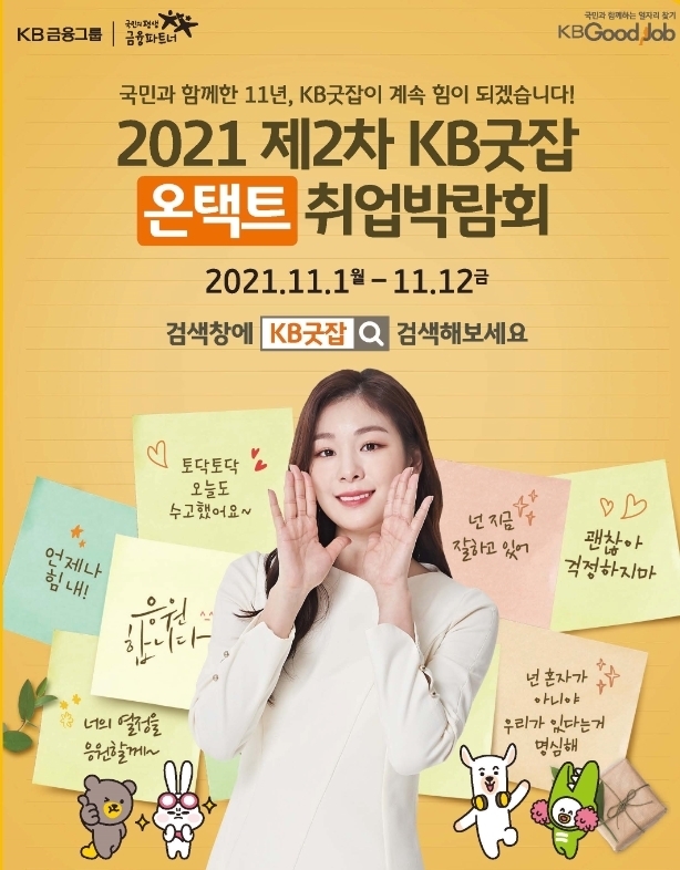 【 청년일보 】 KB국민은행은 오는 12일까지 KB굿잡 웹사이트와 모바일 앱을 통해 언제 어디서나 국민 모두가 참여 가능한 '2021 제2차 KB굿잡 온택트 취업박람회'를 개최한다고 1일 밝혔다.
