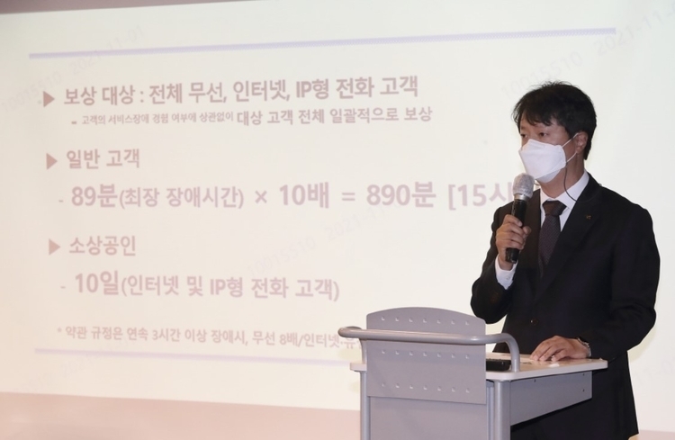 KT는 지난 1일 가입자당 평균 1000원, 소상공인 평균 7000∼8000원 수준의 보상안 공개. 원만한 보상 진행과 지원을 위해 전담 지원센터를 2주간 운영 예정.