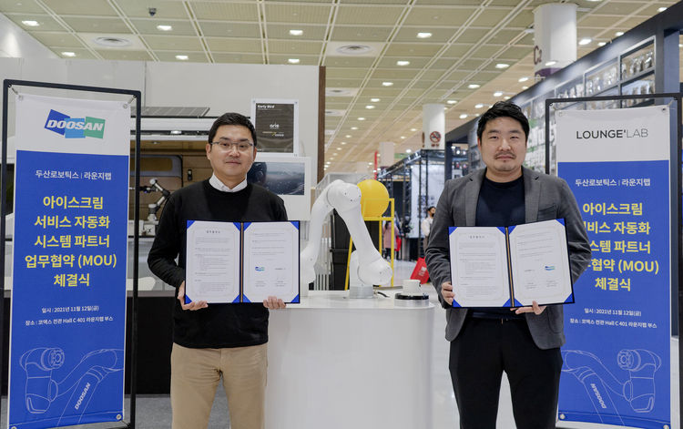 【 청년일보 】두산로보틱스는 서비스 로봇 스타트업인 라운지랩과 '협동로봇 솔루션 활성화 및 아이스크림 서비스 자동화 시스템을 위한 업무협약(MOU)'을 체결했다고 15일 밝혔다.