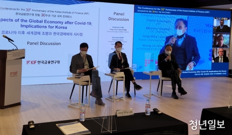 한국금융연구원은 1일 오전 서울 중구에 위치한 은행연합회에서 한국금융연구원 창립 30주년 기념 '코로나19 이후 세계경제 조망과 한국경제에의 시사점' 컨퍼런스 패널토론을 진행했다.