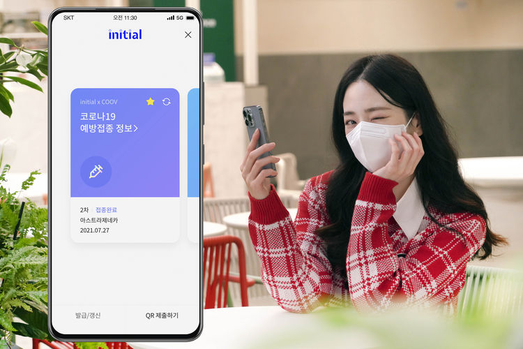 SKT는 8일부터 자사 '이니셜' 앱을 통해 코로나19 백신 접종 정보가 포함된 예방 접종 정보를 발급·조회하도록 정보서비스를 제공하고, 향후 QR코드를 통한 인증 기능도 추가할 예정이다.