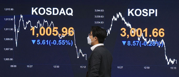 13일 한국거래소에 따르면 코스피는 이날 전 거래일보다 8.57포인트(0.28%) 내린 3,001.66에 거래를 마쳤다.