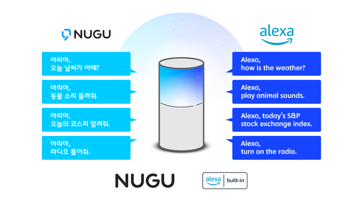 한국어 AI 호출어인 '아리아'를 부르면 '누구'를 통해 한국어 서비스 및 한국 콘텐츠를, 영어 AI 호출어인 '알렉사'를 부르면 알렉사를 통해 영어 서비스 및 해외 콘텐츠를 이용하는 방식이다.