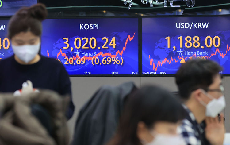 28일 한국거래소에 따르면 코스피는 전날보다 20.69포인트(0.69%) 오른 3,020.24에 장을 마쳤다. 지수는 전장보다 7.22포인트(0.24%) 오른 3,006.77에 출발해 혼조세를 보였으나 오후 들어 기관의 대량 매수세가 들어오며 상승 폭을 키웠다.
