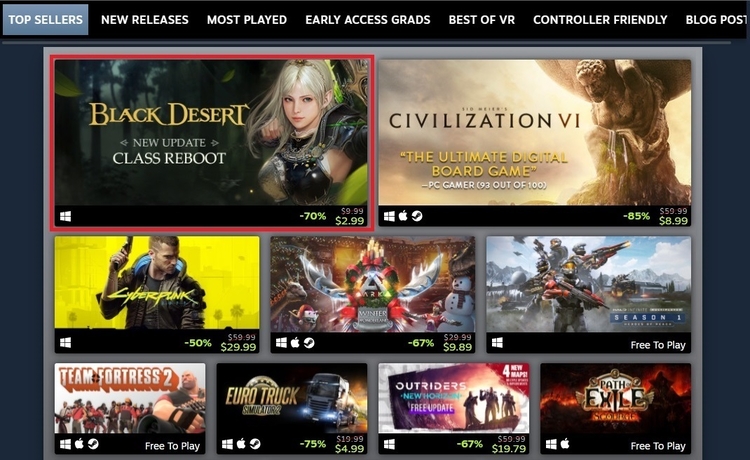 검은사막은 지난해 스팀에서 총수익 기준 상위 100개 게임을 선정하는 최다 판매 부문에 이름을 올렸다. 국내 MMORPG 중 유일하다. 사이버펑크 2077, 헤일로 인피니트, 몬스터 헌터 월드 등 글로벌 흥행작과 함께 선정됐다.
