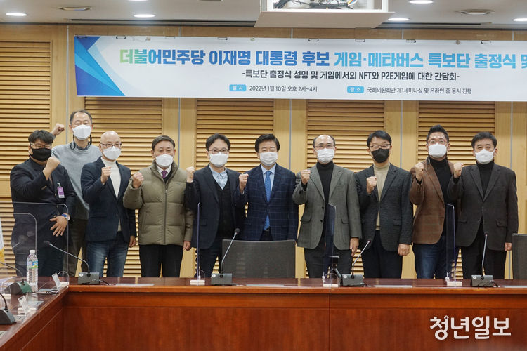 게임·메타버스 특보단은 10일 국회의원회관 제1세미나실에서 출정식을 개최했다. 출정식에는 노웅래 더불어민주당 의원과 특보단의 위정현, 박기목 공동단장을 비롯해 이흥주 한국게임학회 부회장, 김병수 한국인터넷PC문화협회장, 조태봉 한국문화콘텐츠라이선싱협회장 등 업계 관계자가 참석했다.