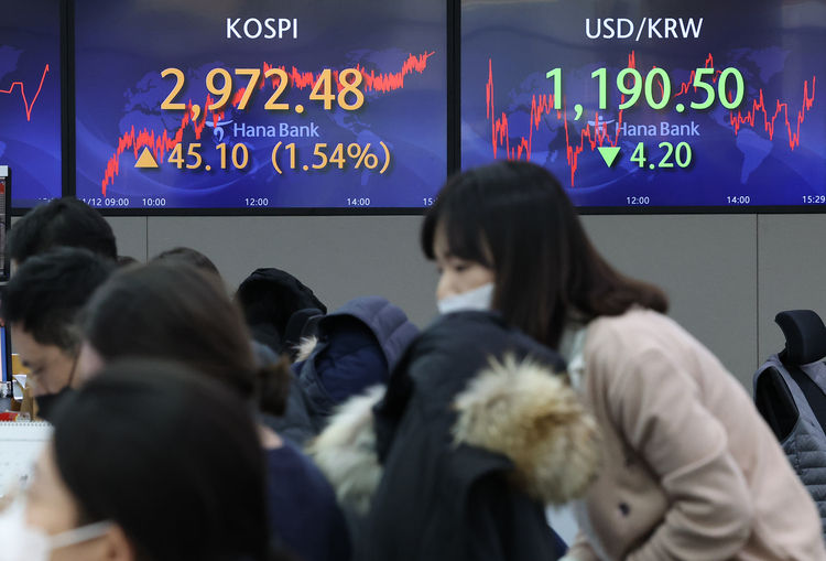 이날 코스피는 전 거래일보다 45.10포인트(1.54%) 오른 2,972.48에 거래를 마쳤다. 지수는 전장보다 23.40포인트(0.80%) 상승한 2,950.78에서 출발해 강세 흐름을 지속했다.
