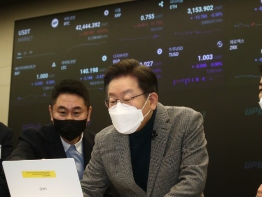 먼저 이재명 후보는 19일 강남구 역삼동의 두나무 사옥을 찾아 가상자산 거래소 대표들과 간담회를 진행한 뒤 가상자산업의 제도화를 핵심으로 하는 공약을 발표했다.