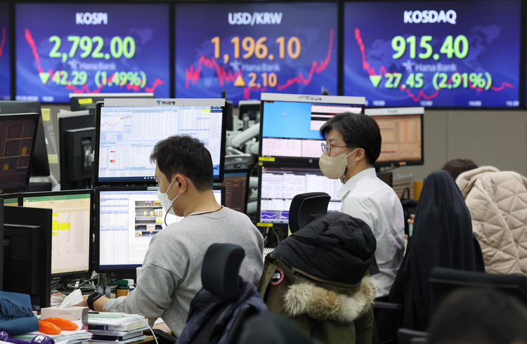24일 코스피는 전장 대비 42.29포인트(1.49%) 하락한 2792.00으로 거래를 마침. 지수는 전장보다 10.53포인트(0.37%) 내린 2823.76으로 출발해 장초부터 낙폭을 키웠다고. 지난 2020년 12월 29일(2792.06) 이후 13개월 만의 저점.
