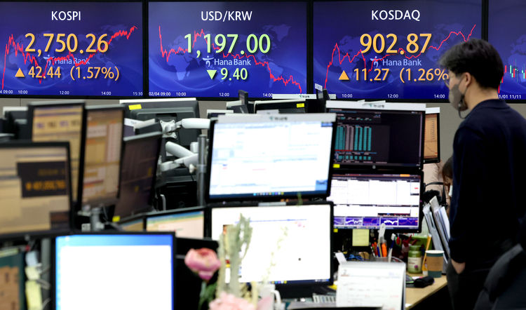 4일 코스피는 전 거래일보다 42.44포인트(1.57%) 오른 2,750.26에 거래를 마쳤다. 지수는 전장보다 7.01포인트 상승한 2,714.83에서 출발해 상승폭을 키웠다.