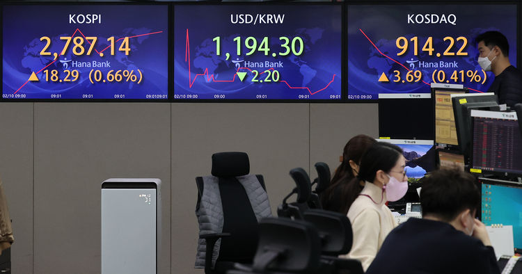 8일 오전 9시27분 기준 코스피는 전 거래일보다 18.38포인트(0.66%) 오른 2,787.23이다. 지수는 전장보다 18.59포인트(0.67%) 오른 2,787.44에서 출발해 상승세를 이어가고 있다.