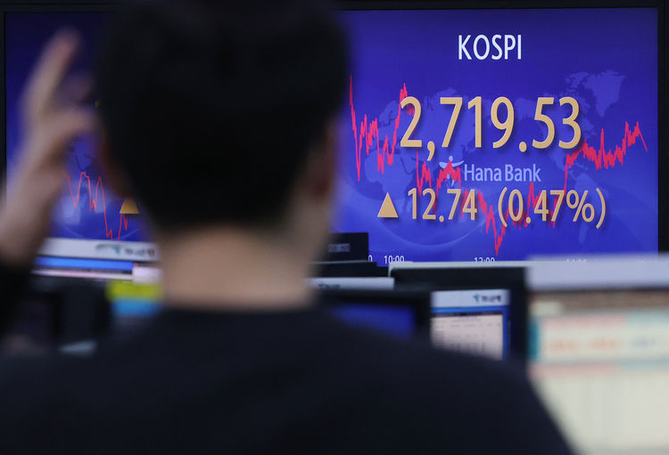 23일 한국거래소에 따르면 코스피는 전날보다 12.74포인트(0.47%) 상승한 2,719.53에 장을 마쳤다. 지수는 전장 보다 20.64포인트(0.76%) 오른 2,727.43에 출발한 후 등락을 거듭하다 2,710대에서 마감했다.