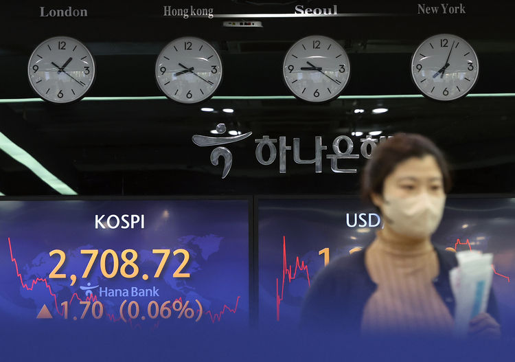 21일 오전 9시 23분 기준 코스피는 전날보다 4.15포인트(0.15%) 하락한 2,702.87을 나타냈다. 지수는 전장보다 10.79포인트(0.40%) 오른 2,717.81에 출발했으나 이후 2,702.20까지 밀리는 등 뚜렷한 방향을 잡지 못한 채 2,700대 보합권에서 오르내리고 있다.
