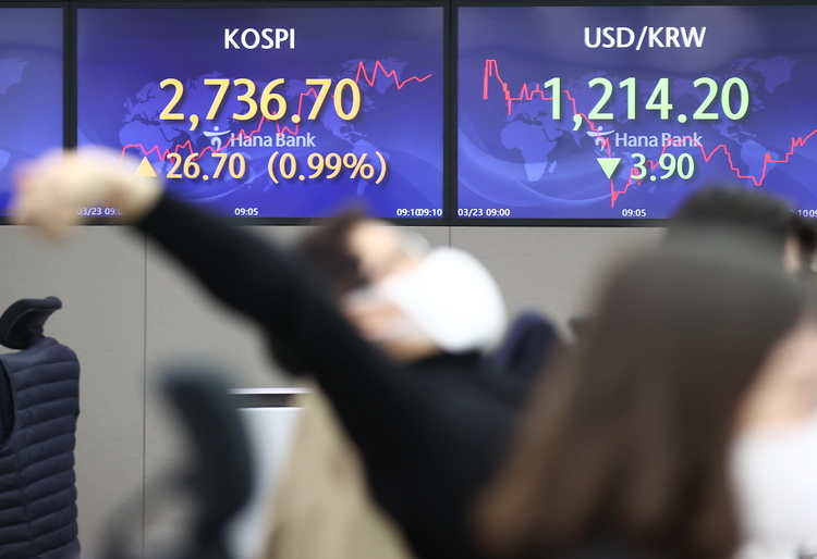 23일 오전 9시20분 기준 코스피는 전날 27.26포인트(1.02%) 상승한 2,737.76을 나타냈다. 지수는 전장보다 17.12포인트(0.63%) 오른 2,727.12에 출발해 상승 흐름을 이어가고 있다.