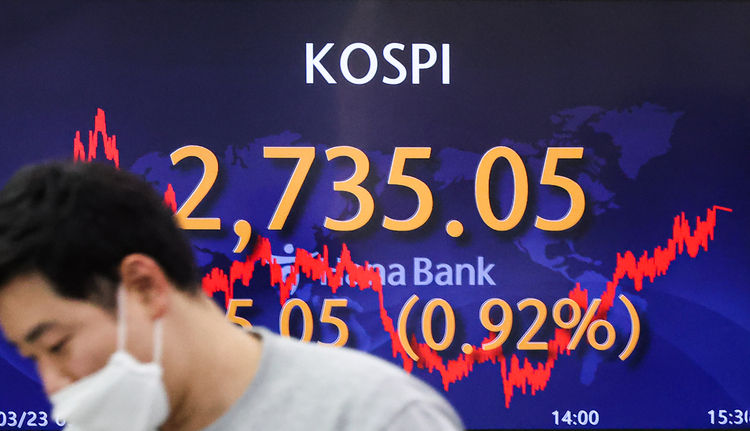 23일 한국거래소에 따르면 코스피는 전거래일 보다 25.05포인트(0.92%) 상승한 2,735.05에 장을 마쳤다. 지수는 전장보다 17.12포인트(0.63%) 오른 2,727.12로 출발해 상승 흐름을 이어갔다.
