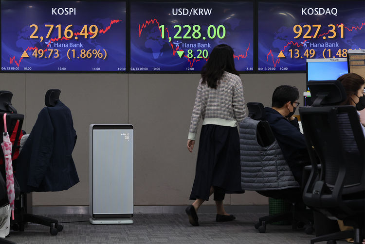 13일 한국거래소에 따르면 코스피는 전 거래일보다 49.73포인트(1.86%) 오른 2,716.49에 마감했다. 지수는 전장보다 10.77포인트(0.40%) 높은 2,677.53에서 출발해 상승 폭을 키웠다.