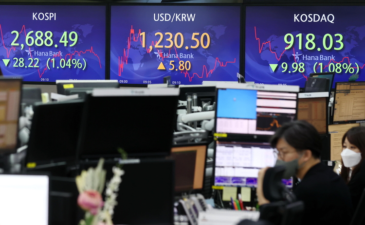 15일 오전 9시 16분 기준 코스피는 전 거래일보다 25.62포인트(0.94%) 내린 2,691.09다. 지수는 전장보다 21.19포인트(0.78%) 낮은 2,695.52에서 출발해 하락 중이다.