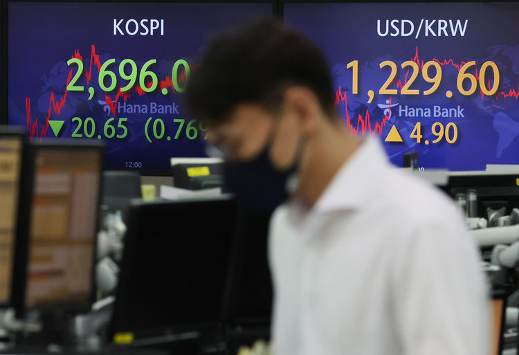 15일 한국거래소에 따르면 코스피는 전 거래일보다 20.65포인트(0.76%) 내린 2,696.06에 장을 마쳤다. 지수는 전장보다 21.19포인트(0.78%) 낮은 2,696.52에서 출발해 장 초반 2,685.01까지 내려갔다. 이후 개인의 매수세로 낙폭을 축소했다.