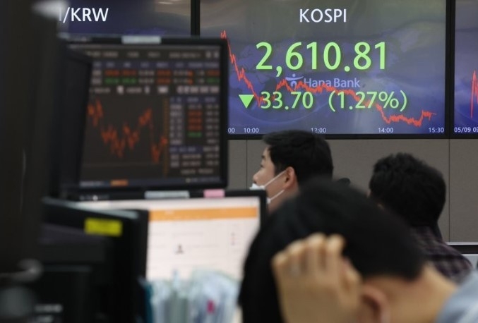코스피는 9일 전 거래일보다 33.70포인트(1.27%) 밀린 2,610.81에 장을 마감했다.