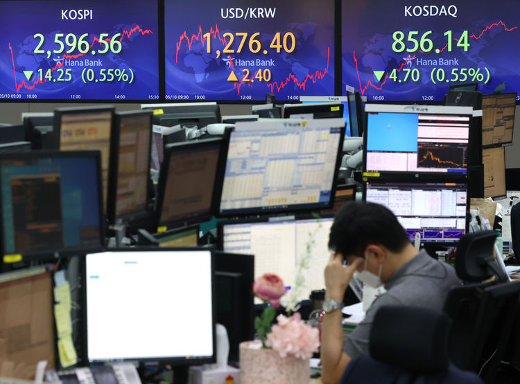 10일 한국거래소에 따르면 코스피는 전 거래일보다 14.25포인트(0.55%) 하락한 2,596.56에 거래를 마쳤다. 코스피 지수가 2,600선이 무너진건 2020년 11월 30일 이후 17개월여 만이다.
