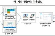 <제공=금감원>앞으로은행·보험등본인의모든금융계좌를한번에확인할수있게된다. 금융감독원은19일부터본인의모든금융계좌를원스톱으로조회할수있는'내계좌한눈에'서비스1단계를시작한다고18일밝혔다. '내계좌한눈에'서비스1단계는은행·보험·상호금융·대출·카드발급정보등5개로구분해핵심정보를제공한다. 또정보조회의편의성제고를위해요약정보와상세정보로구분한계좌정보도제공한다. 우선은행의수시입출금,정기예·적금,신탁,개인종합자산관리계좌(ISA)·펀드,외화등모든계좌와상호금융의수시입출금,정기예·적금,펀드등모든계좌를조회할수있다. 카드의경우신용카드발급내역을알아볼수있다. 은해과상호금융은개별계좌의상품명,계좌번호,잔고등세부졔좌정보까지알수있고보험정보는보험사명,상품명,계약상태,보장시작·종료일,피보험자정보등을확인할수있다. 조회한결과는고객의정보보호를위해시스템에저장되지않고즉시삭제된다. 서비스는금융소비자정보포털'파인'또는'내계좌한눈에'홈페이지를통해제공된다.오전9시부터오후10시까지이용이가능하며모바일서비스는내년2월부터실시할예정이다. 금감원은서비스1