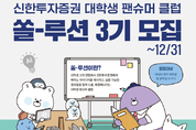 【 청년일보 】 신한투자증권은 대학생 팬슈머 클럽 '쏠-루션' 3기 및 금융 IT 인재 양성 프로그램인 ‘프로디지털아카데미’ 7기를 모집한다고 8일 밝혔다. ‘쏠-루션’은 대학생 고객 관점에서 신한투자증권에 대해 적극적으로 의견을 제시하는 팬슈머(팬 'fan'과 소비자 'consumer'의 합성어, 단순 구매의 역할을 넘어 상품, 기획, 생산 과정에 적극 참여하는 소비자) 클럽으로 2023년부터 시작해 올해 3회 차이다. 신한투자증권 임직원과 함께 실무 과정에 참여하면서 실현 가능한 결과물을 도출하고 해결하는 역할을 한다. 국내외 대학 재학생 및 휴학생은 누구나 지원할 수 있으며, 서류와 면접 전형을 통해 20명을 선발한다. 모집 기간은 오는 12월 31일 까지며, 활동 기간은 내년 1월부터 4월까지 3개월이다. 선발 인원은 4명씩 팀을 이뤄 AI 영상/이미지 콘텐츠 제작, 기업 제휴 마케팅/콜라보 제안 등 매월 다양한 주제로 프레젠테이션을 수행하며 임직원들과 실무 회의를 진행해 아이디어를 구체화한다. 활동 인원에게는 소정의 활동비가 지급되고, 과정을 마친 인원에게 수료증이 수여된다. 최우수 1개 팀은 200만 원의 포상금과 대졸 신입사원 공개채용 시 서류전